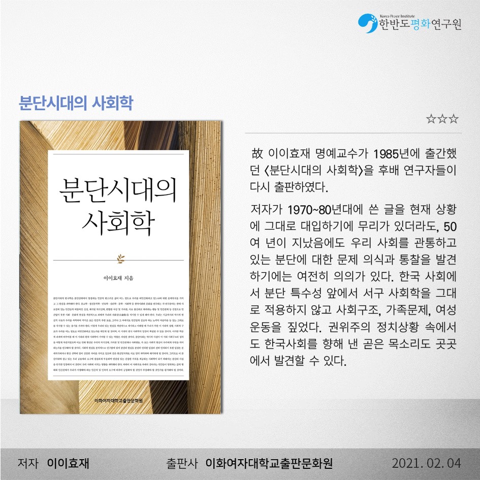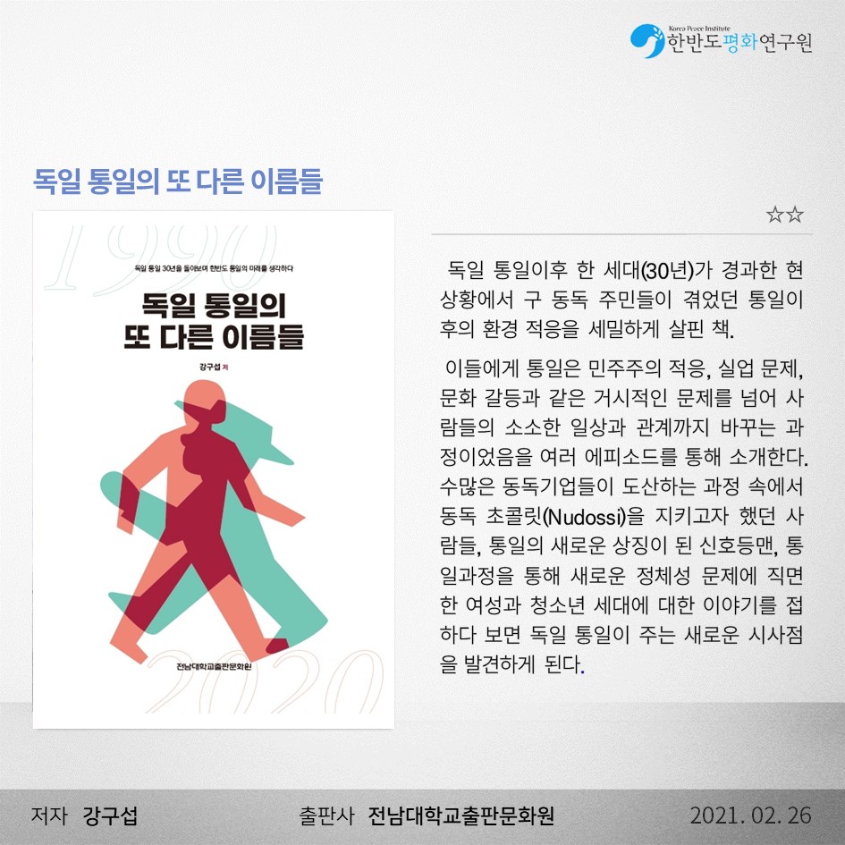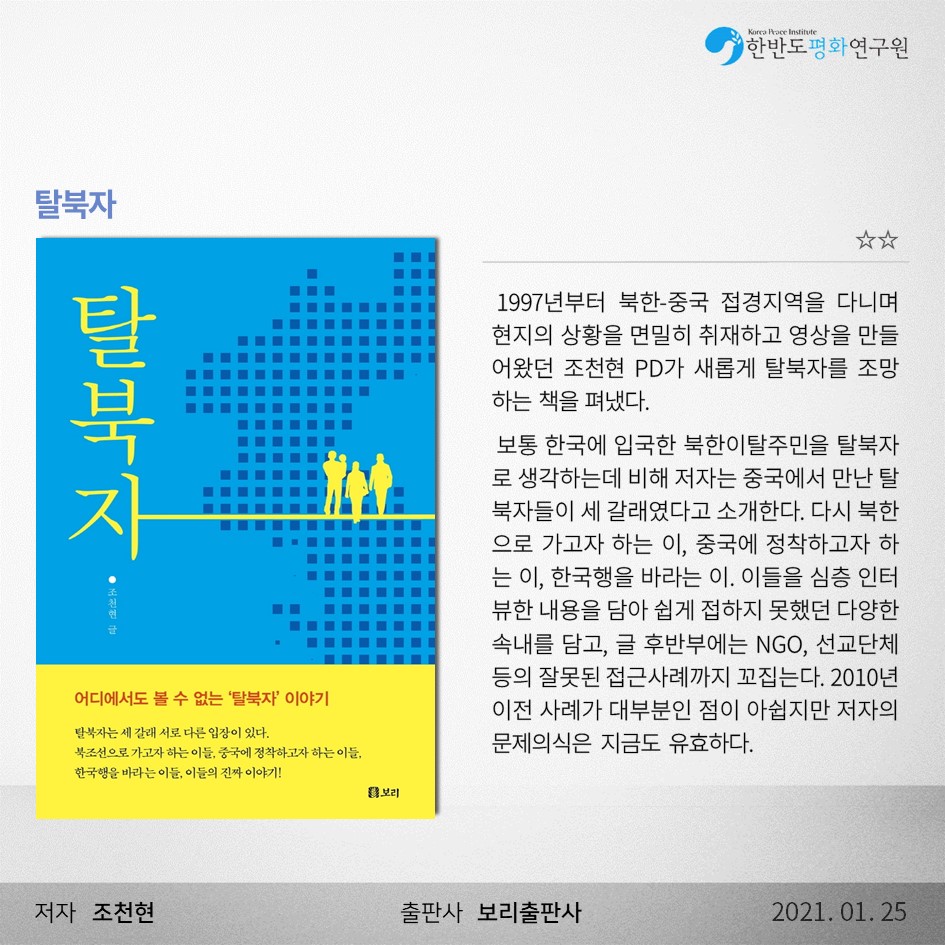 [평화문제] [KPI 북카드뉴스] 2021년 1~3월 북한•통일 분야 신간도서