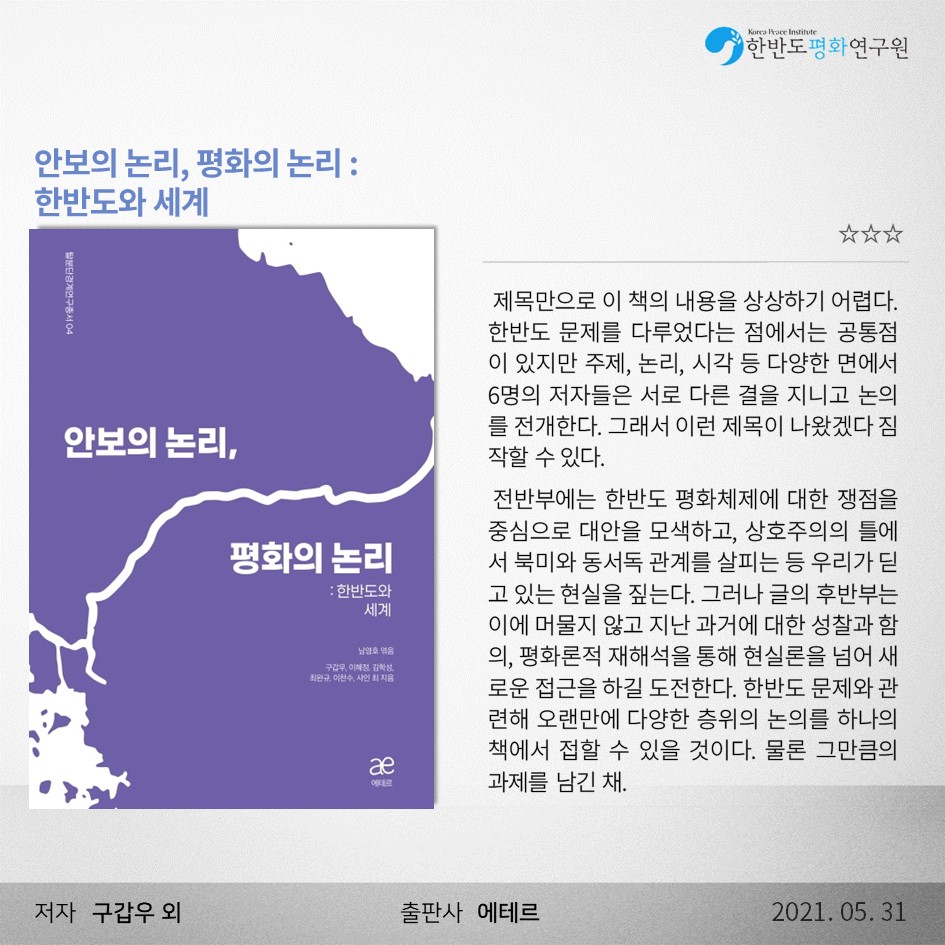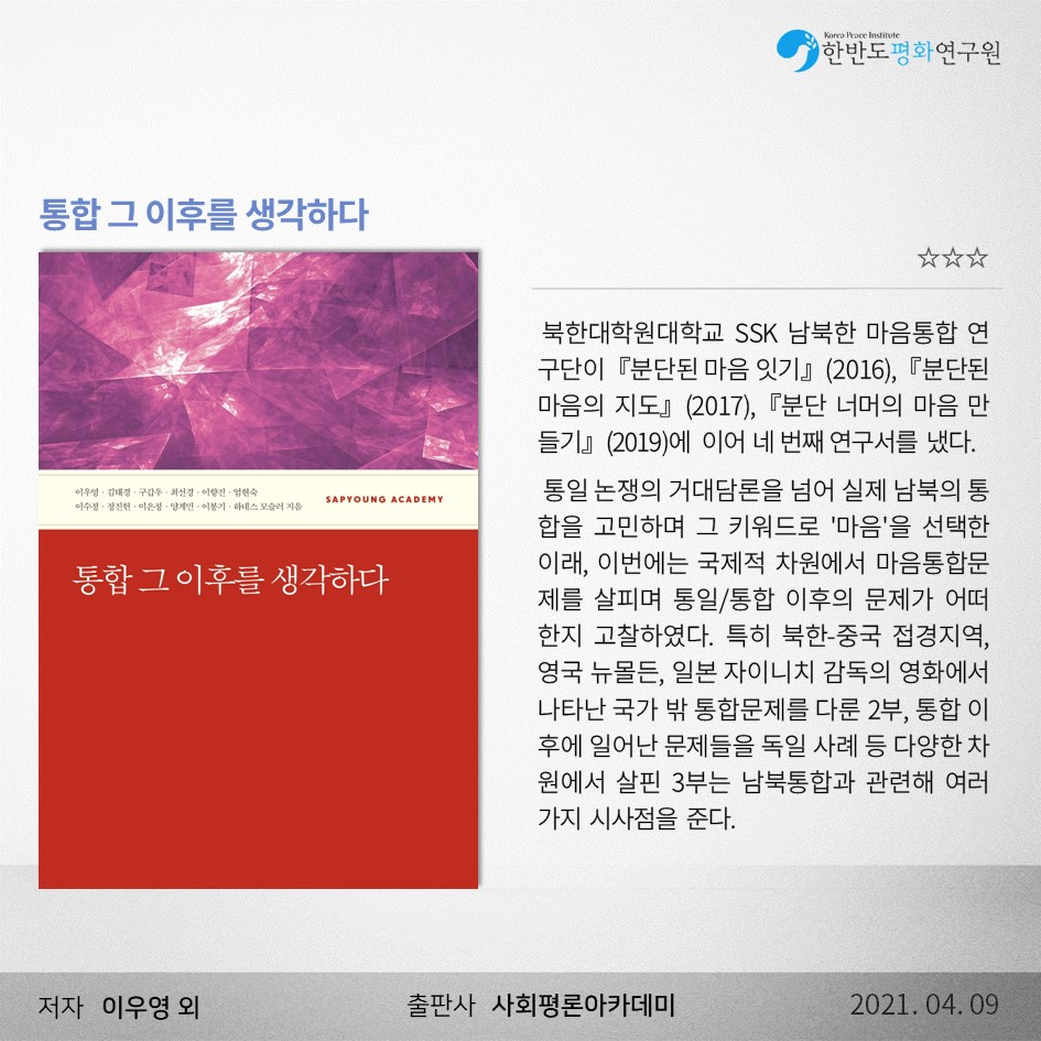 [평화문제] [KPI 북카드뉴스] 2021년 4~6월 북한•통일 분야 신간도서
