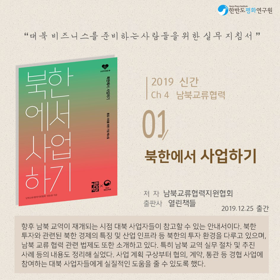 [남북통합] 2019 북한・통일 도서신간_Ch 4. 남북교류협력