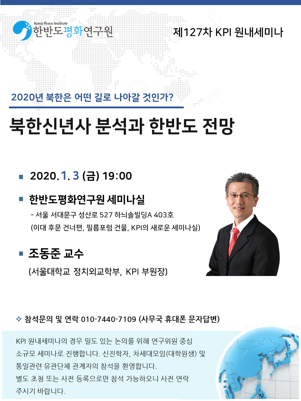| 장소 | 한반도평화연구원 4층 세미나실 | |