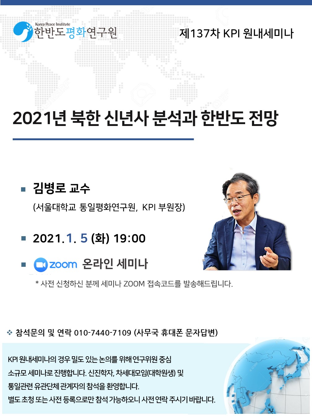 발표자 : 김병로 교수 (서울대학교 통일평화연구원, KPI부원장)