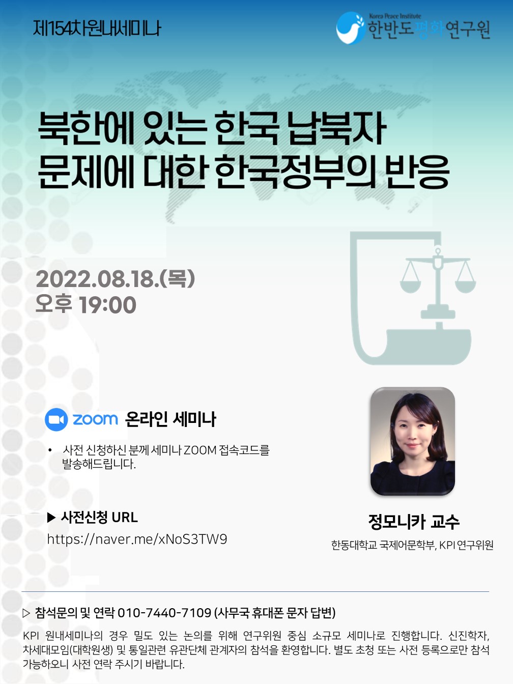 북한에 있는 한국 납북자 문제에 대한 한국정부의 반응 정모니카 교수 (한동대, KPI 연구위원) 납북자 (Abductee to North Korea)