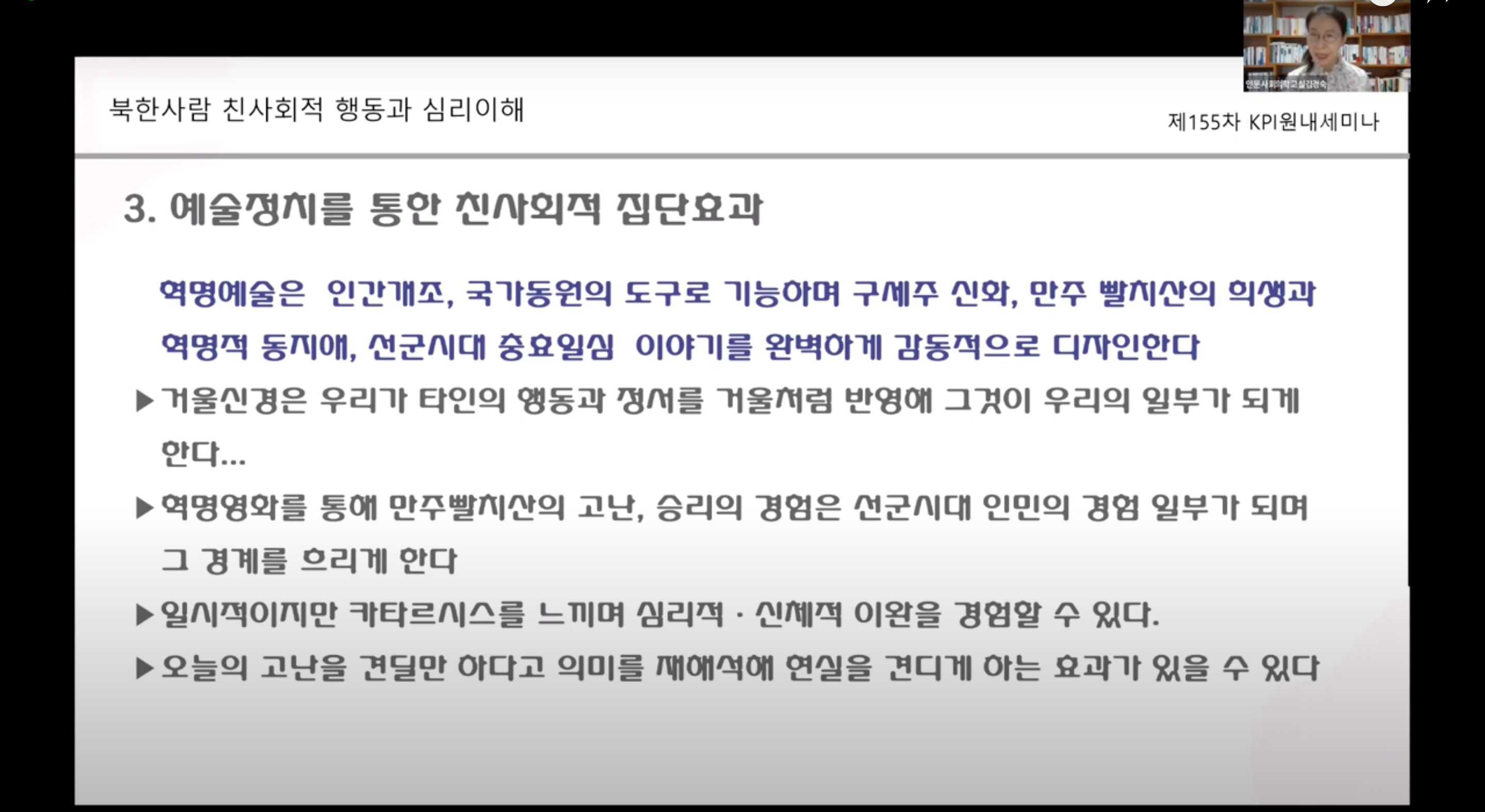 북한 사람의 친사회적 행동과 심리 분석 김경숙교수 (연세대 의과대학 인문사회의학교실 객원교수, KPI 연구위원) |