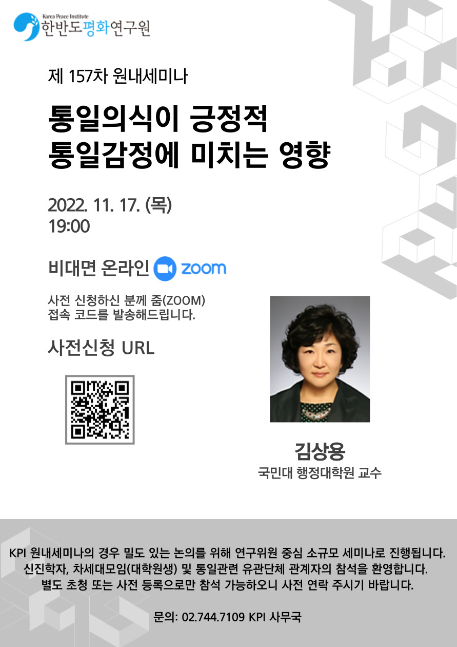 통일의식이 긍정적 통일감정에 미치는 영향 김상용 교수 (국민대 행정대학원 교수) |