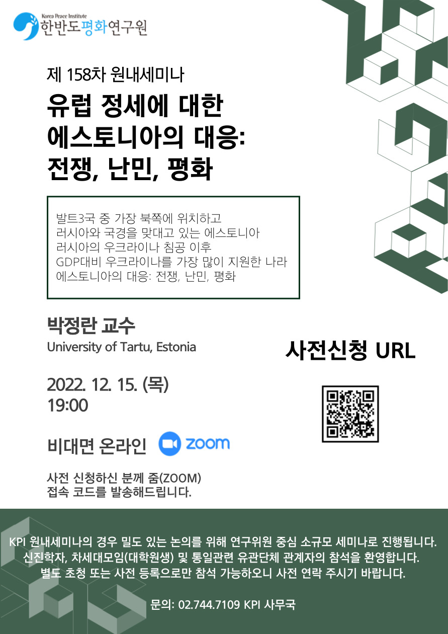 유럽 정세에 대한 에스토니아의 대응: 전쟁, 난민, 평화 박정란 교수 (University of Tartu, Estonia) |