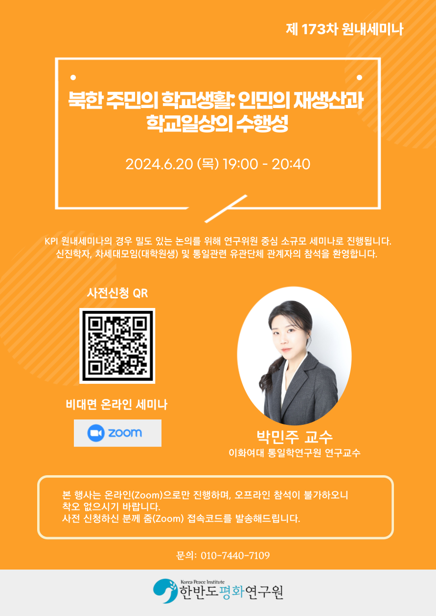 KPI원내세미나#173(2024.06.24) 북한 주민의 학교생활: '인민'의 재생산과 학교 일상의 수행성 박민주 교수