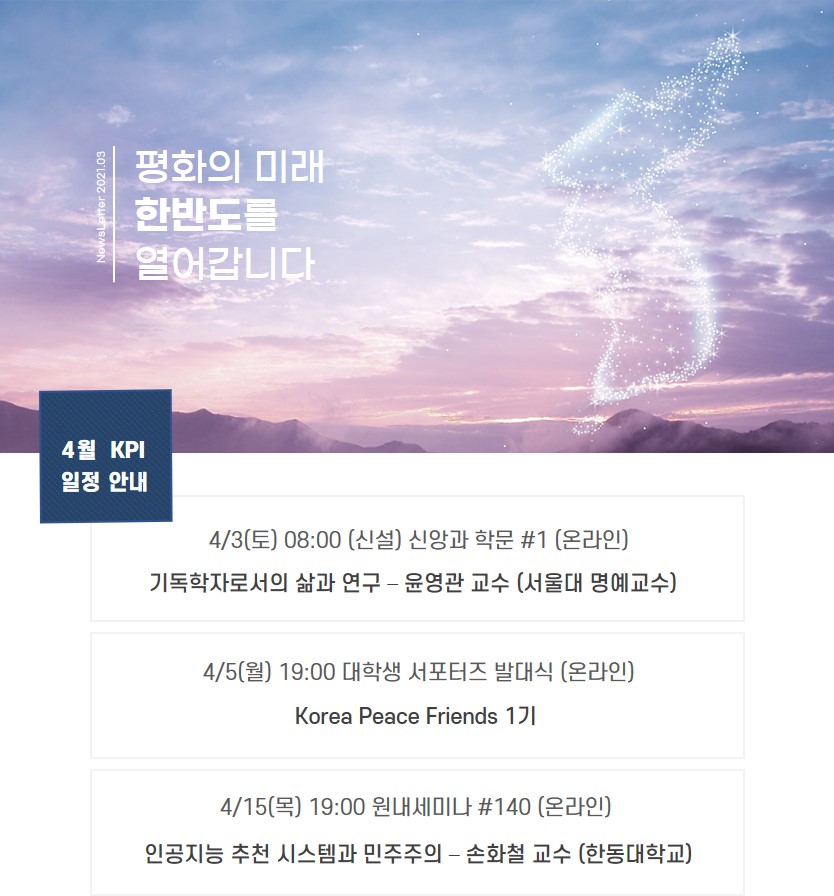 평화와 공동체적 나눔이 충만하여 인권과 자유가 보장되는 하나된 한반도를 열어가는