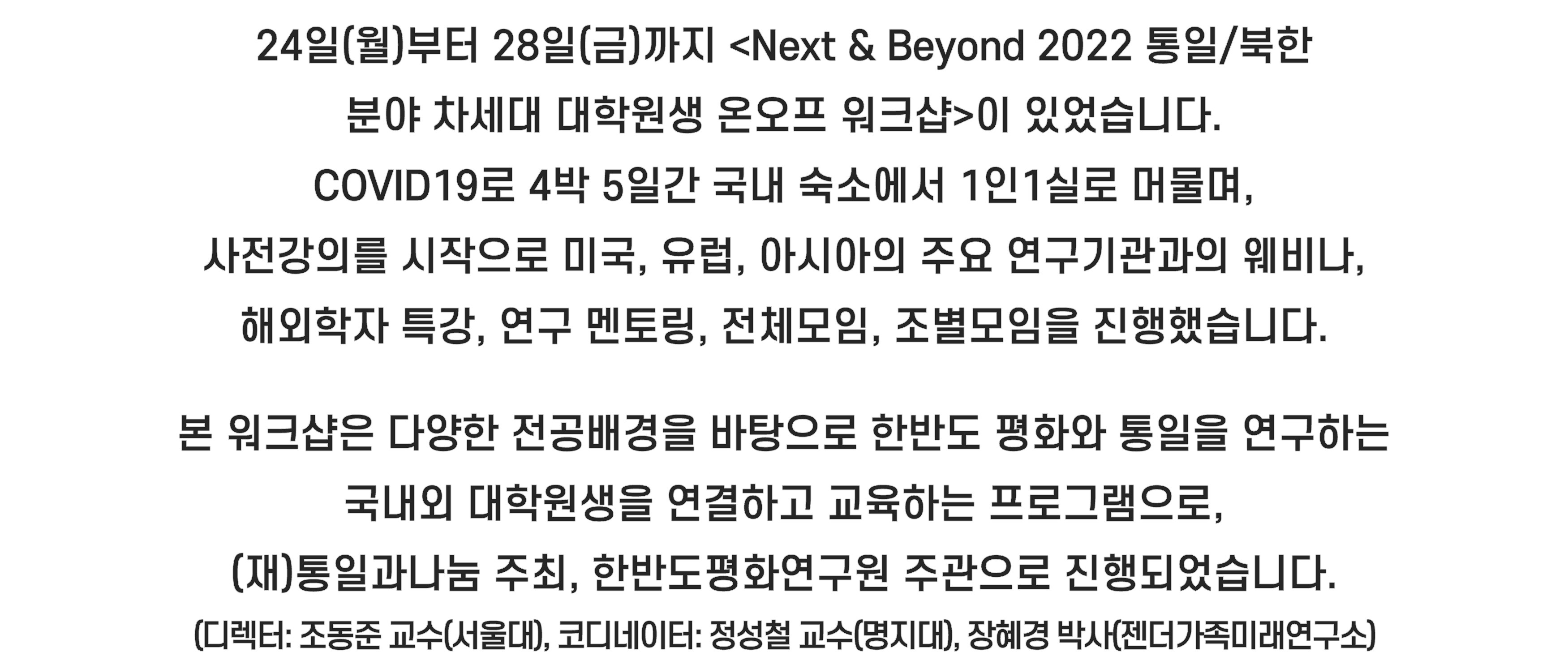 평화와 공동체적 나눔이 충만하여 인권과 자유가 보장되는 하나된 한반도를 열어가는