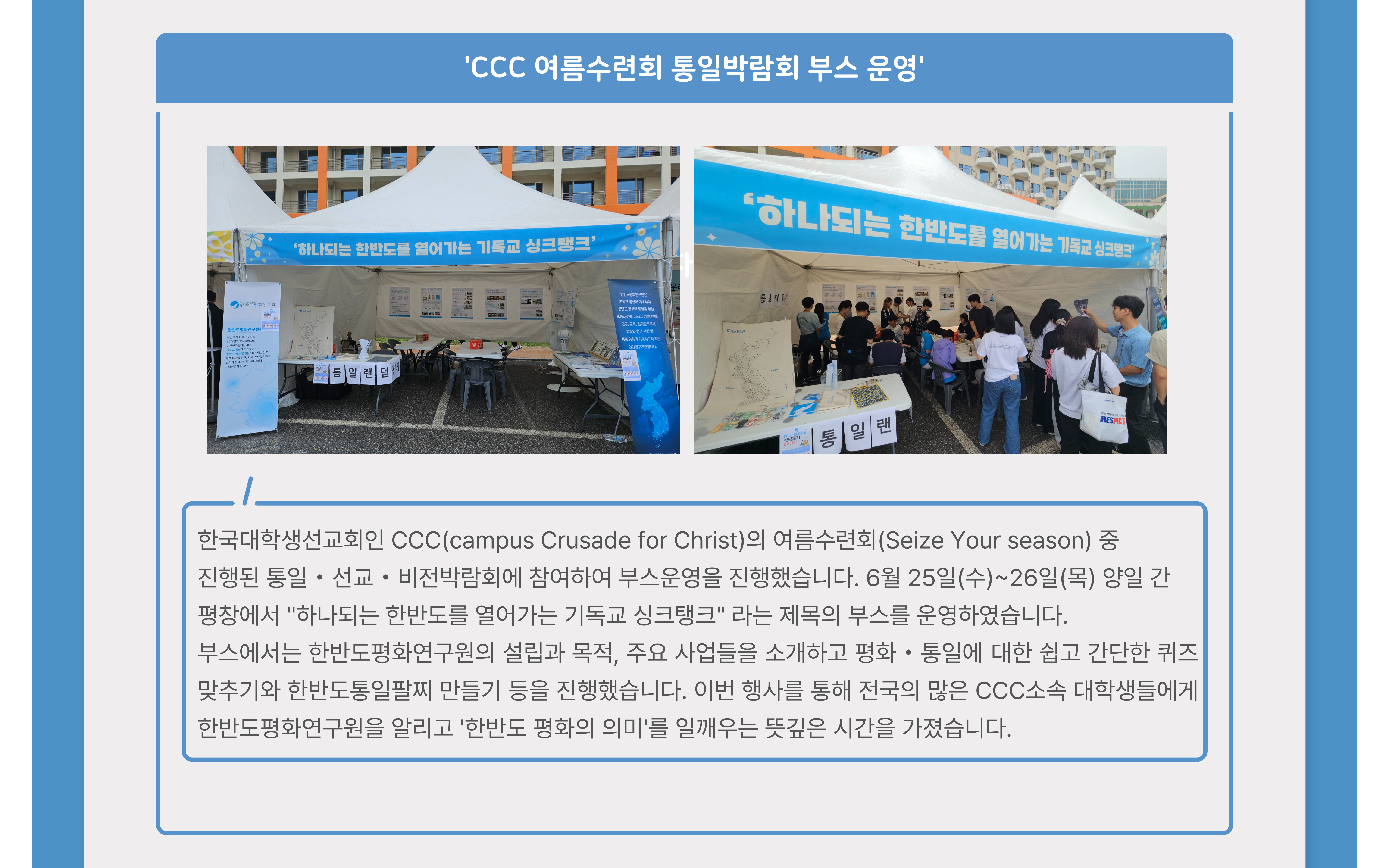 평화와 공동체적 나눔이 충만하여 인권과 자유가 보장되는 하나된 한반도를 열어가는