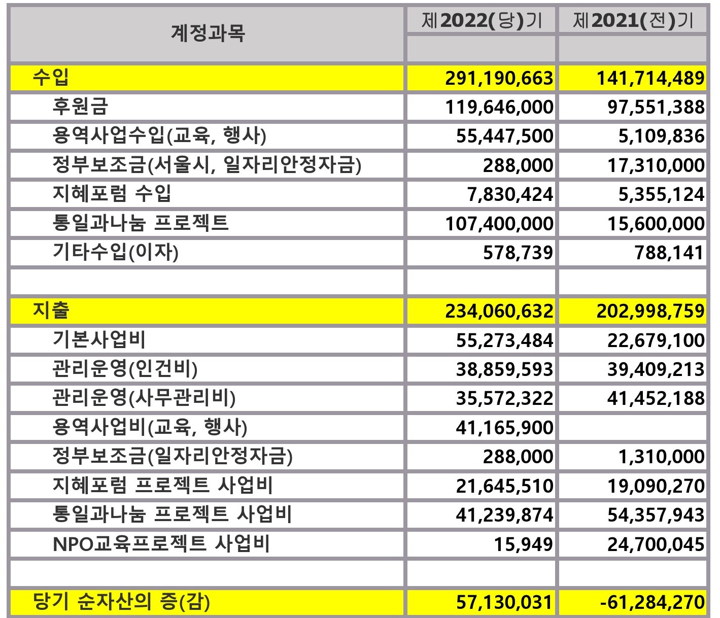 한반도평화연구원의 2022년도 재정보고를 올립니다.