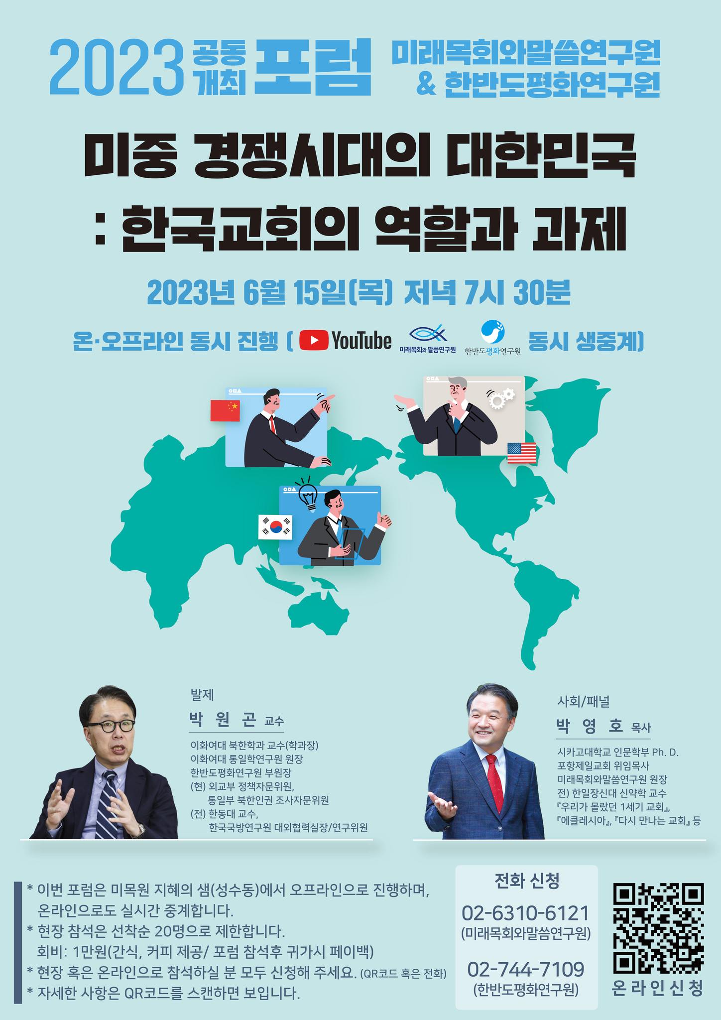 현장 포럼을 한반도평화연구원/미래목회와말씀연구원 유튜브채널을 통해 온라인(Youtube)으로도 실시간 동시중계하려 했으나 현장상황상 미래목회와말씀연구원 유튜브채널로만 중계하게 되었습니다.