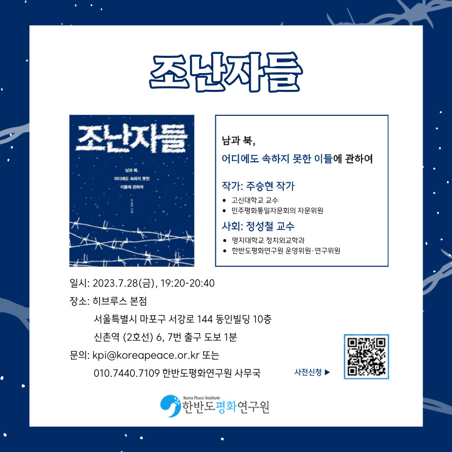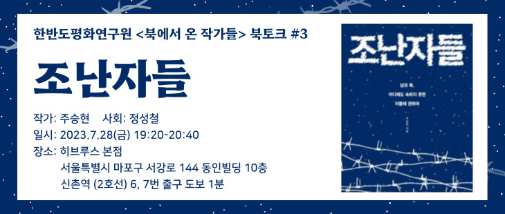 안녕하세요, 한반도평화연구원 사무국입니다. '북에서 온 작가들' 세 번째 북토크를 소개해 드립니다.