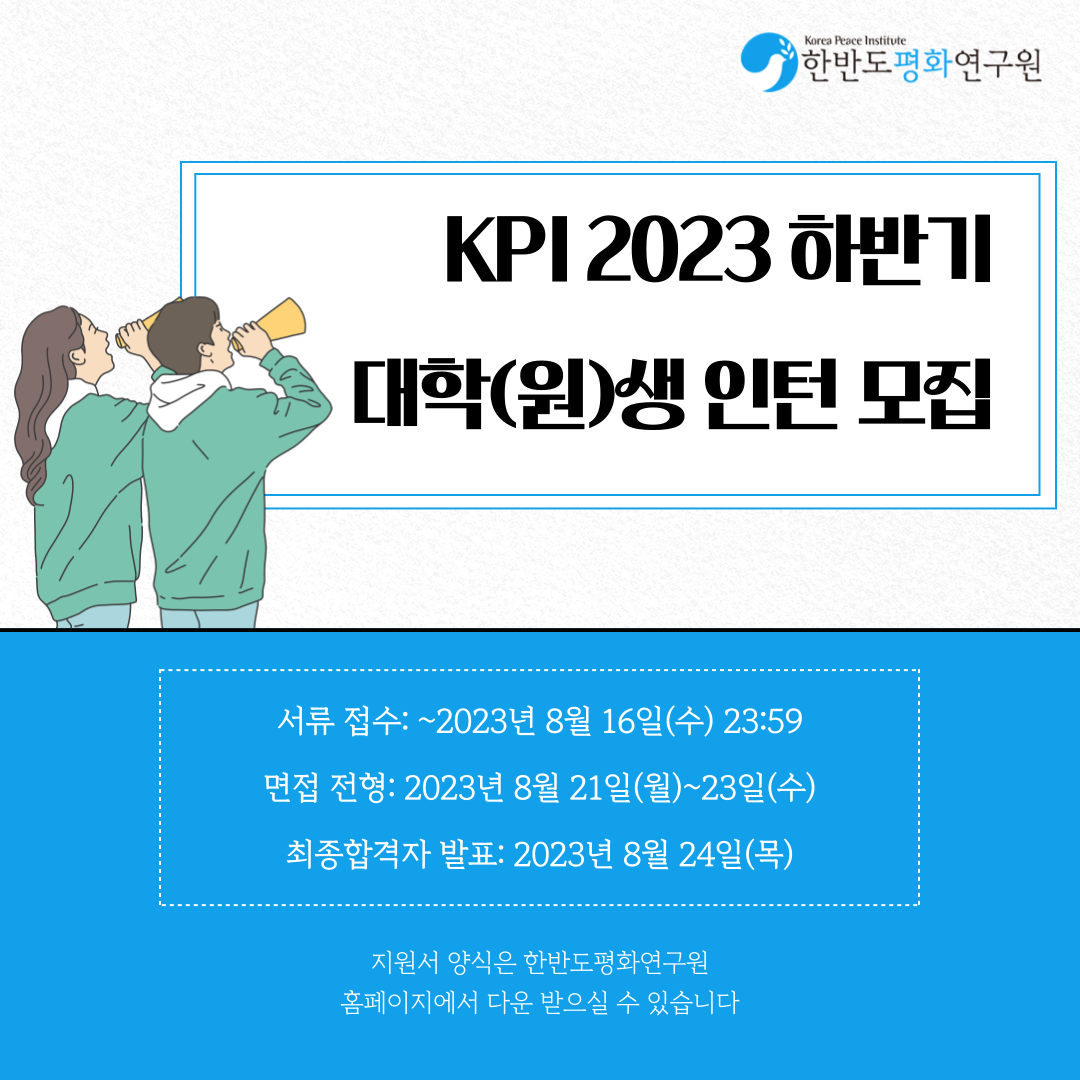 | 제목 | [마감] 한반도평화연구원 2023년 하반기 대학(원)생 인턴 채용공고 | ||