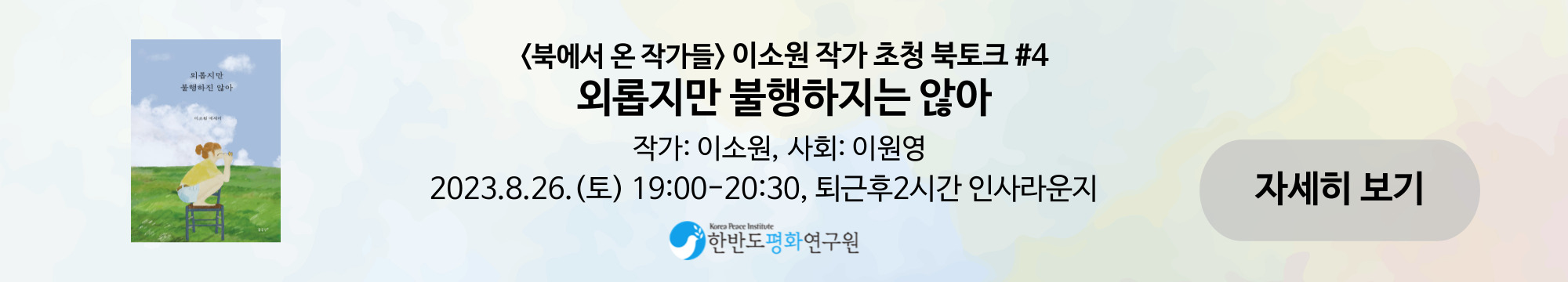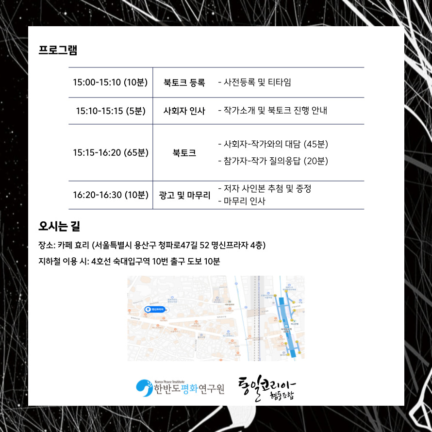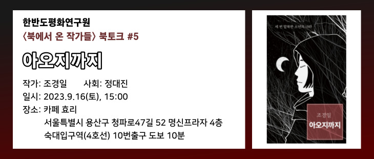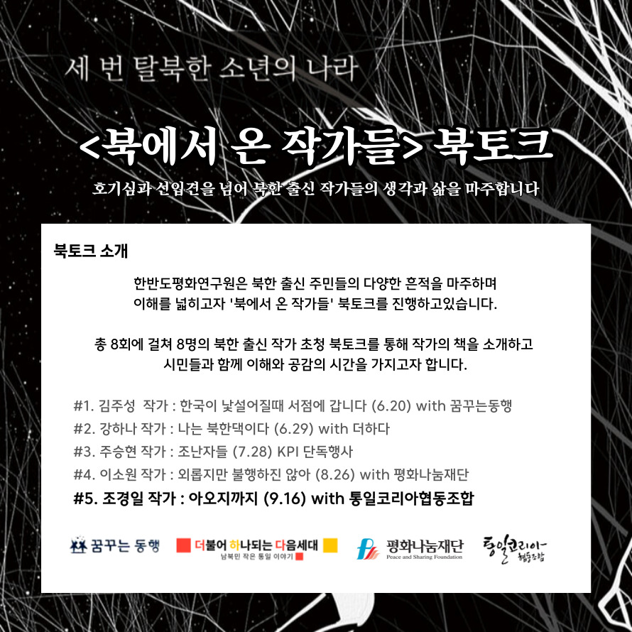 안녕하세요, 한반도평화연구원 사무국입니다. '북에서 온 작가들' 다섯 번째 북토크를 소개해 드립니다.