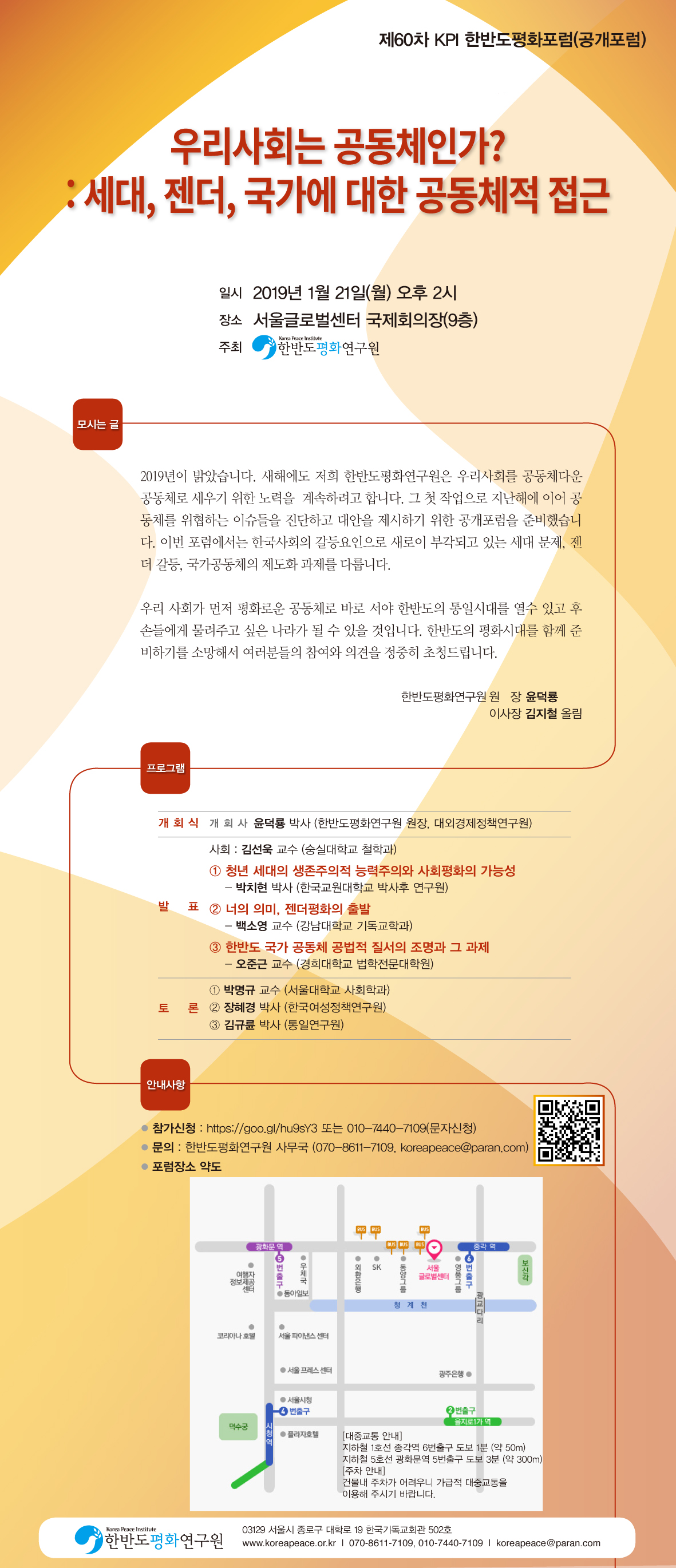 KPI 공개포럼 #60 '우리사회는 공동체인가 : 세대, 젠더, 국가에 대한 공동체적 접근' (1/21월 14:00)
