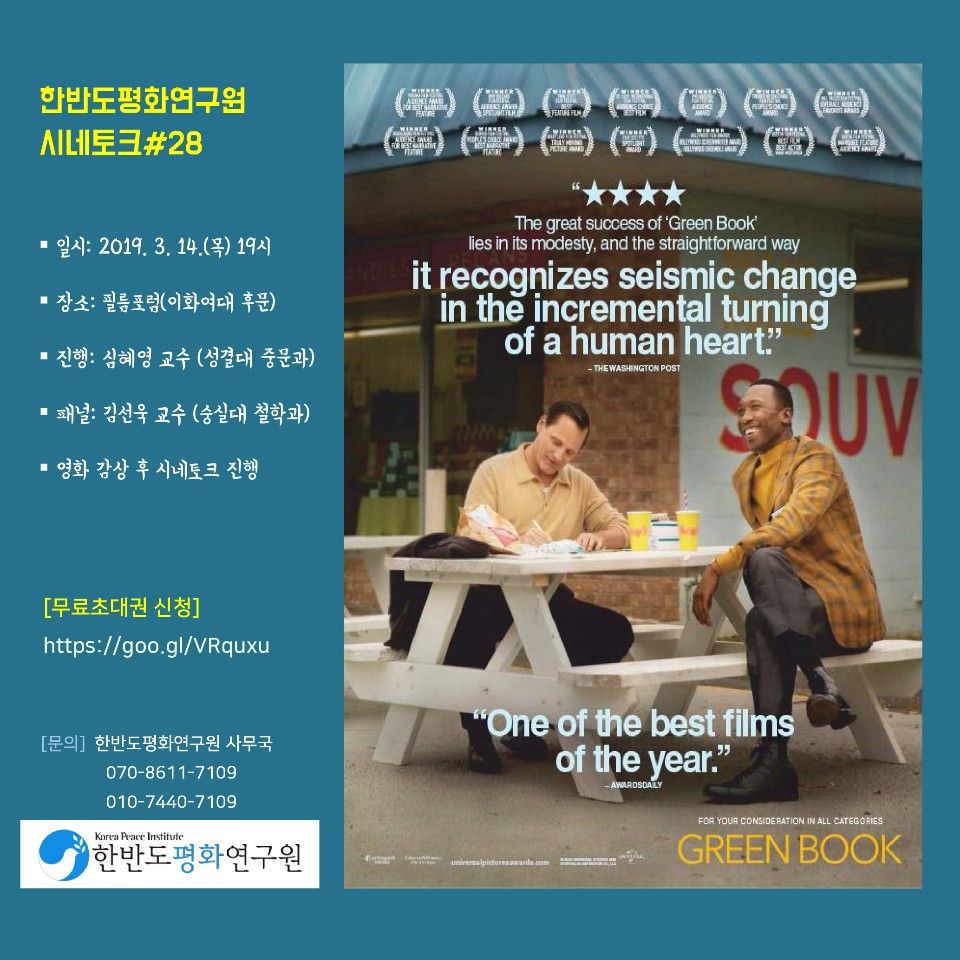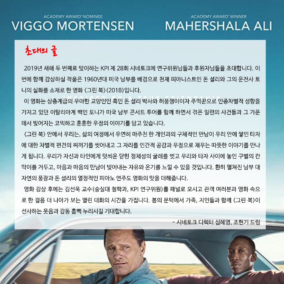 KPI 시네토크 #28 '그린북' (3/14목, 19:00, 필름포럼)