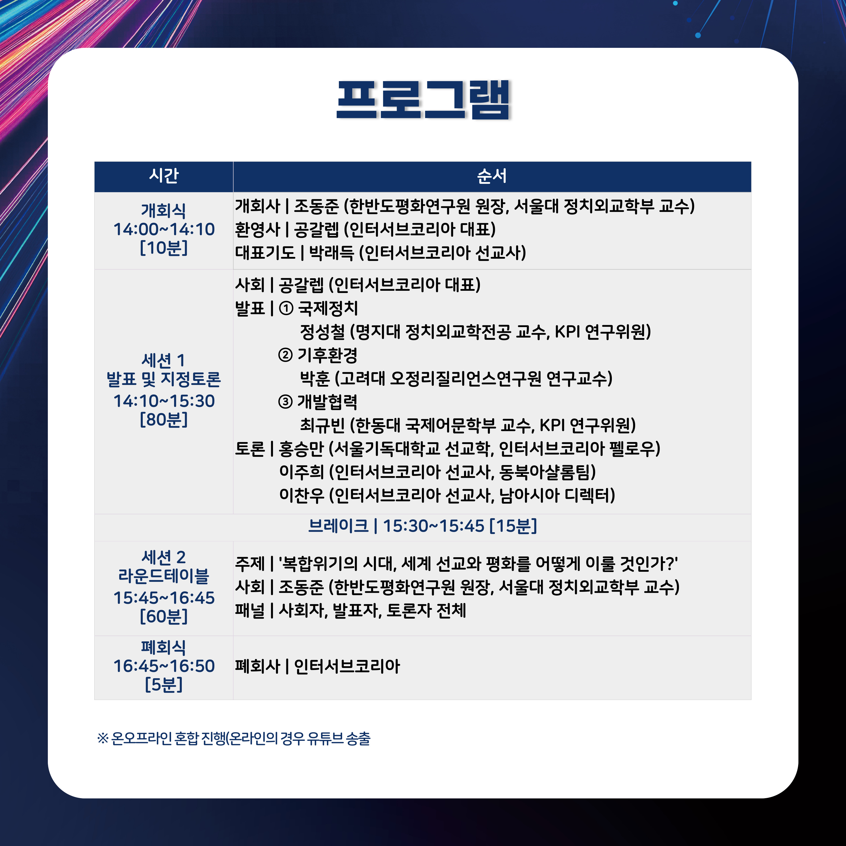 ✔진행 : 온오프라인 포럼 (현장 및 중계 동시 진행)