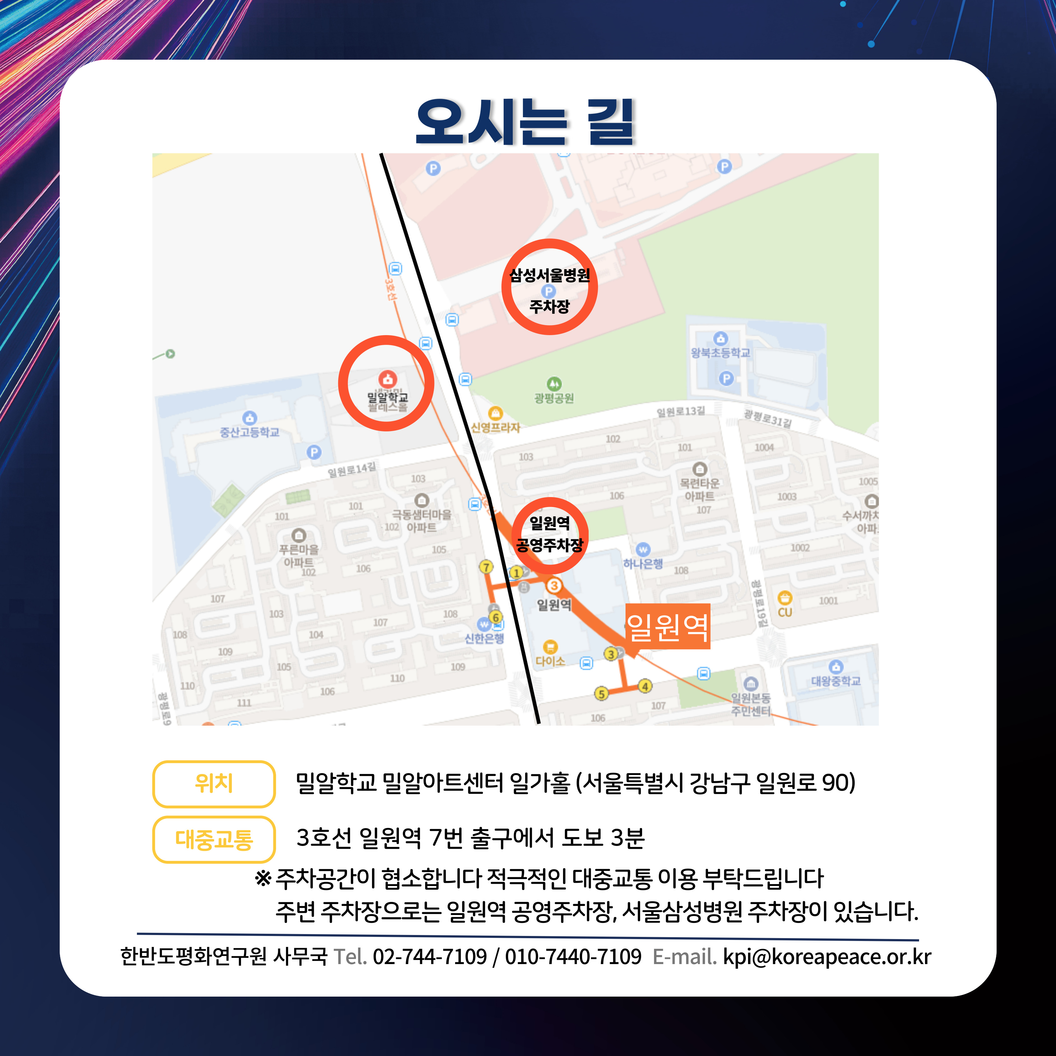 ✔문의: 02-744-7109, 010-7440-7109, kpi@koreapeace.or.kr 한반도평화연구원 사무국
