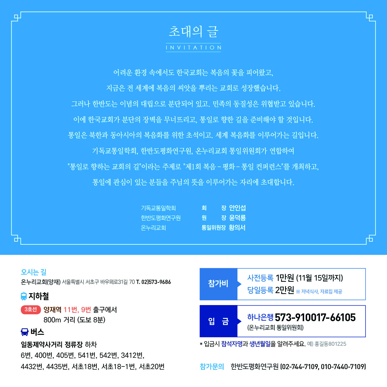 제1회 복음-평화-통일 컨퍼런스 '통일로 향하는 교회의 길' 참가신청 안내