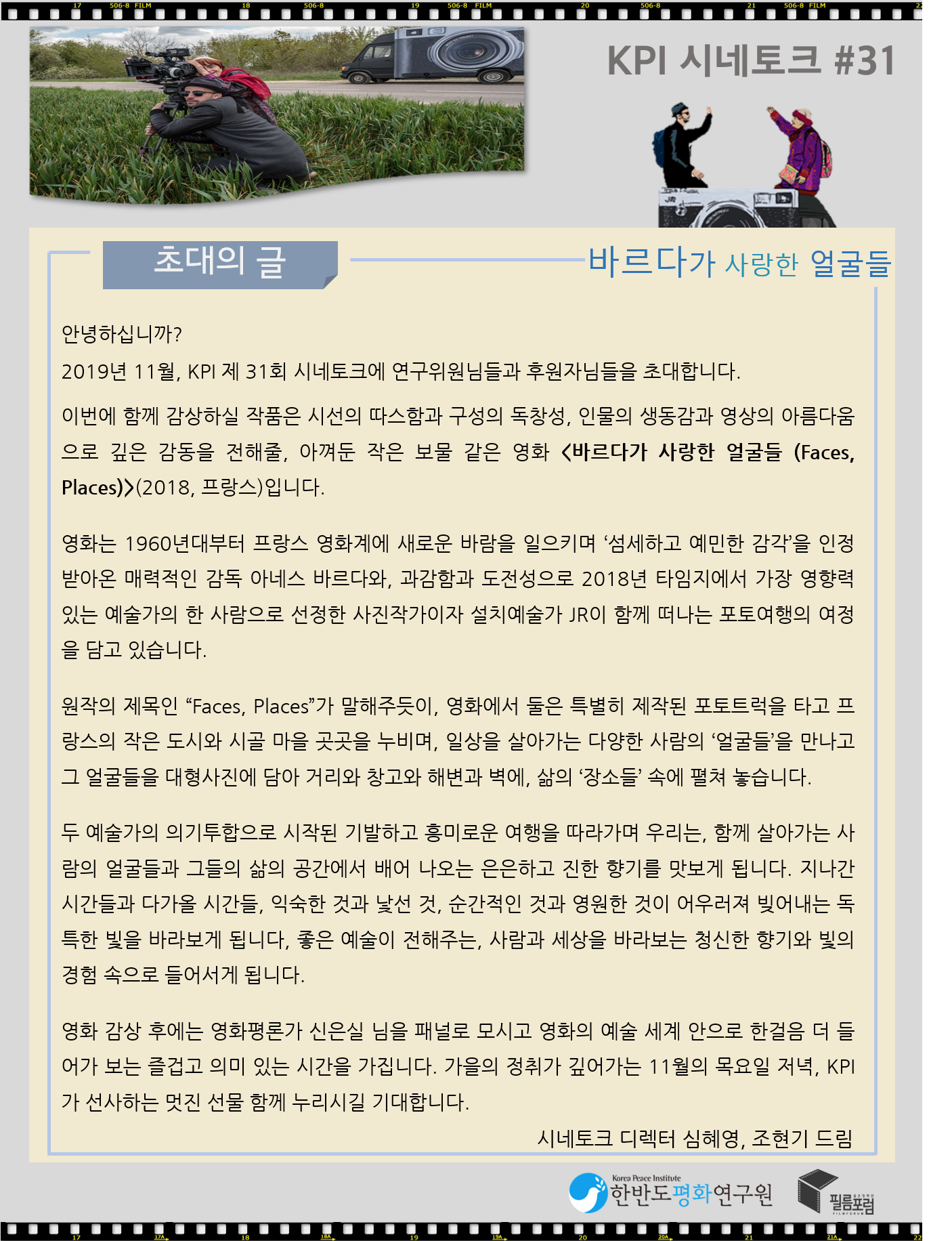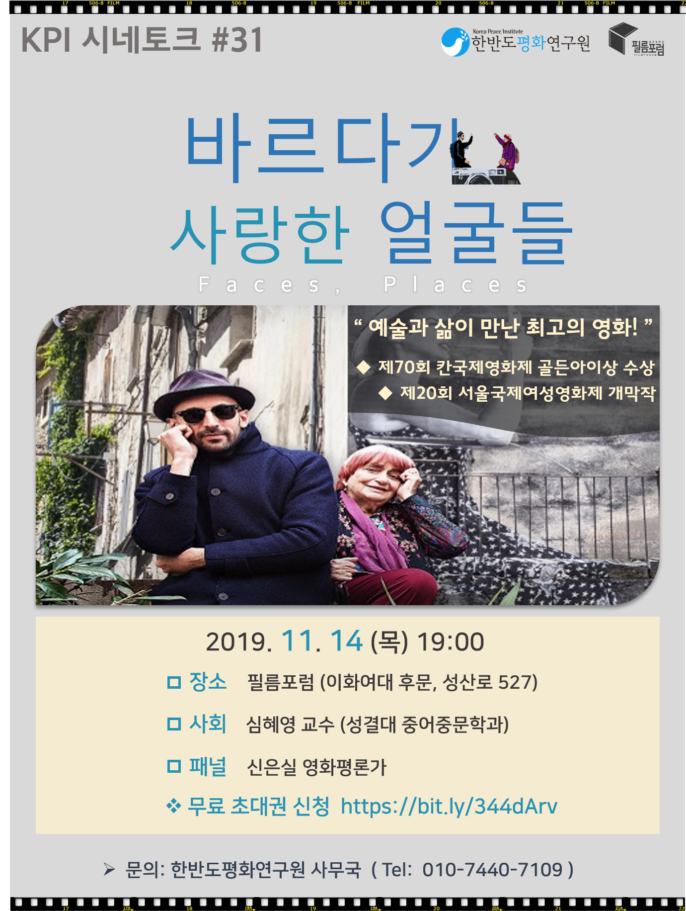 KPI 시네토크#31 '바르다가 사랑한 얼굴들' (11/14목, 19:00, 필름포럼)