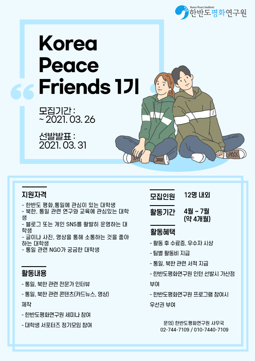 2021 KPI 대학생 서포터즈 'Korea Peace Friends 1기' 모집 안내 (3/26금)
