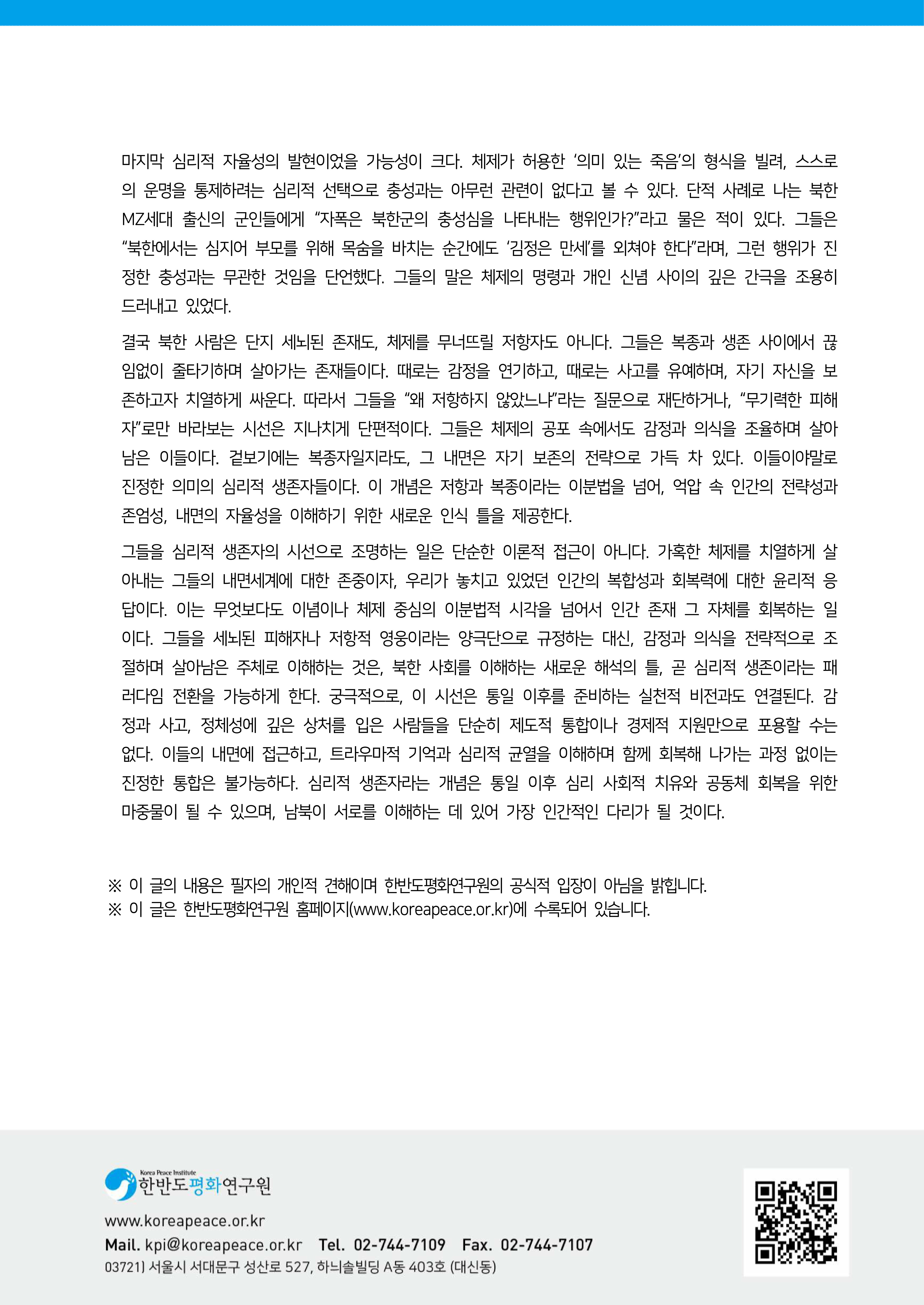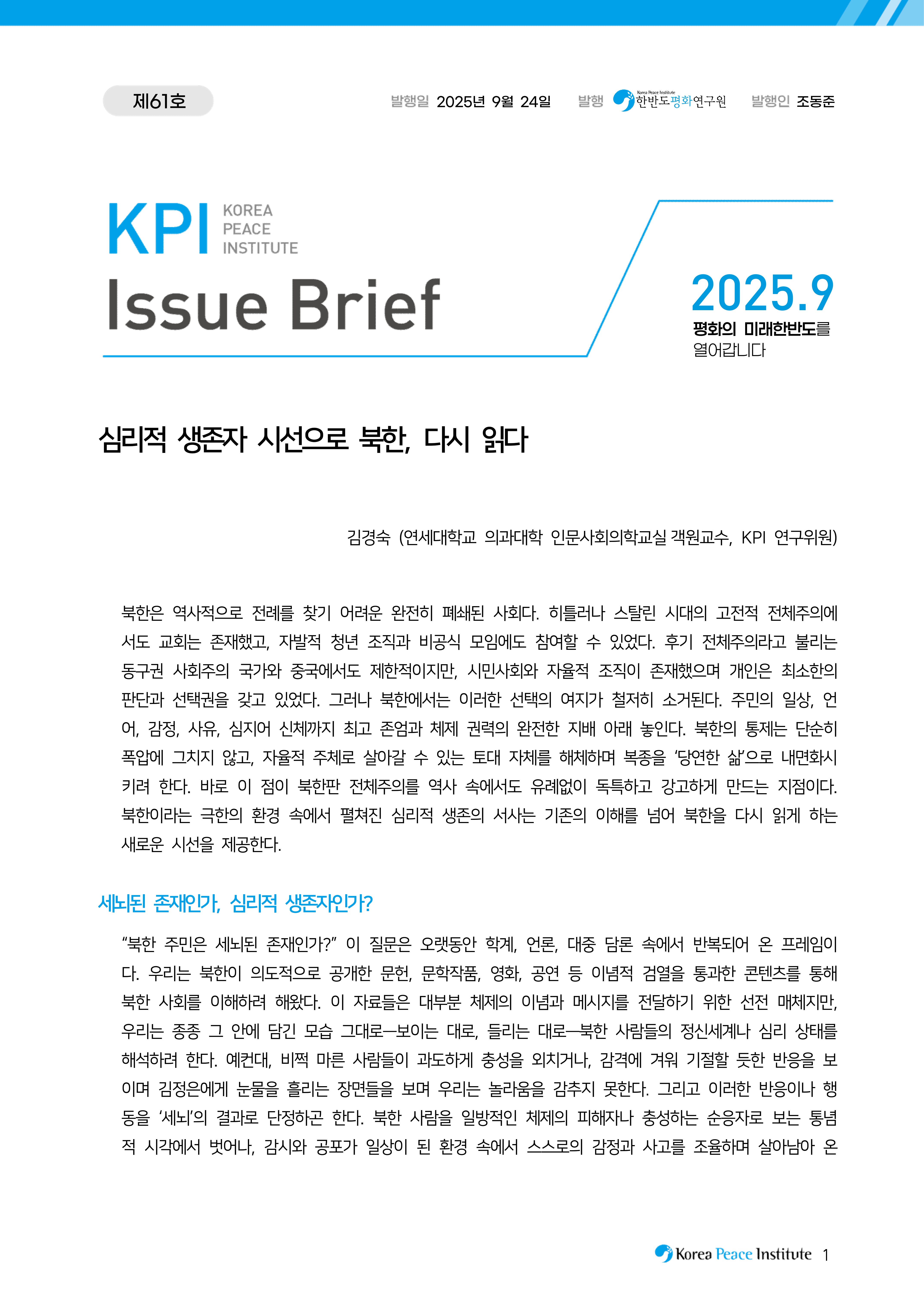KPI이슈브리프_제61호_심리적 생존자 시선으로 북한, 다시 읽다_김경숙 교수님.pdf
