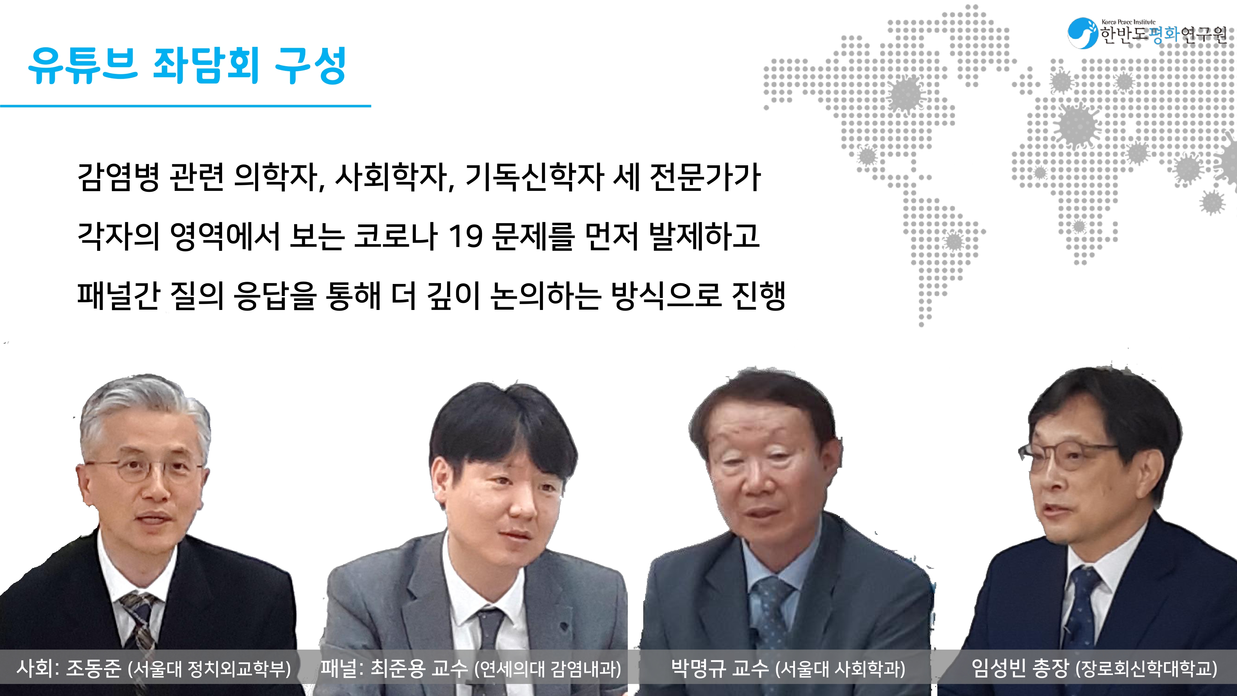 신종 코로나바이러스19가 전 세계로 확산됨에 따라 KPI는 좀 더 장기적이고 근본적인 차원에서 접근해보고자 코로나19 관련 유튜브 특별좌담회를 마련했습니다.