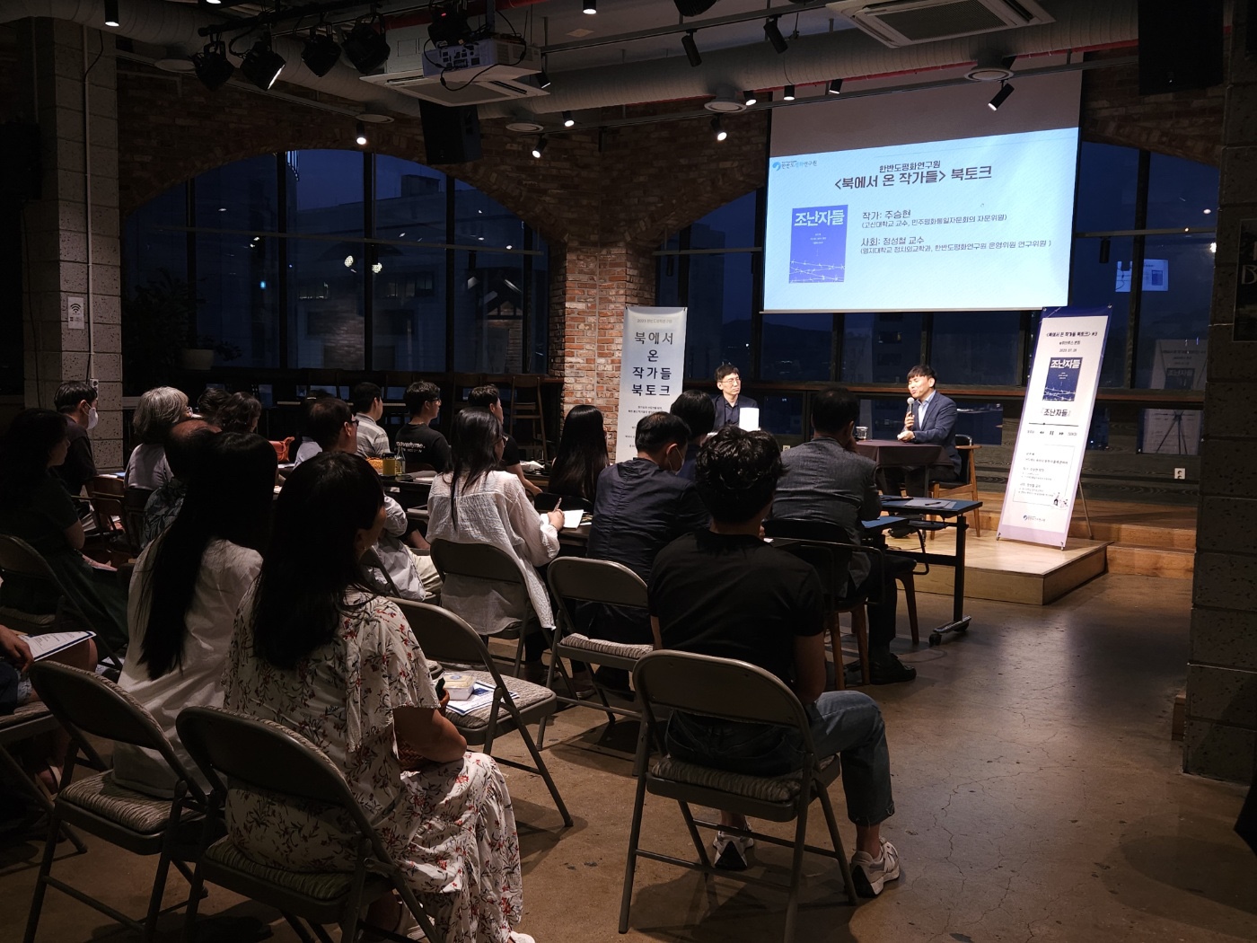 저희 연구원은 북한 출신 작가들의 다양한 목소리를 함께 나누고자 '북에서 온 작가들의 책' 팜플렛을 발간하고, '북에서 온 작가와의 북토크'또한 진행하고 있습니다.