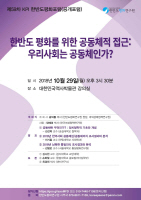 한반도평화연구 민간 싱크탱크인 한반도평화연구원에서 10월 29일(월) 오후 공개포럼을 개최하였다. 한반도평화 공동체를 고민하기 위해서는 먼저 우리사회의 공동체성부터 짚어본다는 취지로 기획된 본 포럼은 광화문 소재 대한민국역사박물관 강의실에서 열렸다.